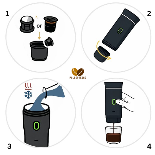 Our Pulsepresso Portable Coffee Maker delivers café-quality coffee on-the-go, blending convenience with versatility. Enjoy rich espresso from capsules or ground coffee—unmatched by any other portable option!